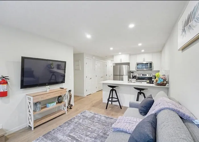 A teakonyha ideális a házi ételek elkészítéséhez. A vendégek könnyen elérhetik az apartman területét, amely a Calgary nemzetkozi repülőtértől 5 km-re van. A Luxury Brand New 1 Bedroom Townhome terasszal büszkélkedhet.